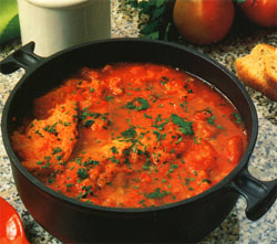 Hacher finement les tomates ou les passer au mélangeur et les mettre directement sur le pain et cuire quelques minutes à  feu élevé, mélanger. Mettre le tout dans le bouillon bouillant, réduire le feu et mijoter à  couvert 40 minutes. Si nécessaire ajouter un peu de sel. Verser dans une soupière et servir.