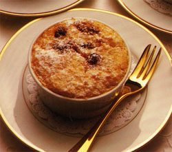 Préchauffer le four à  350°F (180°C). Verser dans 6 moules individuels beurrés et cuire 45 minutes, ou jusqu'à  ce qu'un couteau en ressorte propre. démouler les puddings sur des assiettes individuelles, saupoudrer le sucre à  glacer et servir.