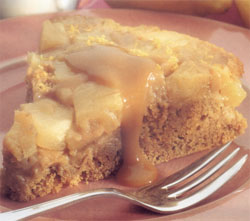 Cuire dans un four pré-chauffé à  350°F de 35 à  40 minutes, jusqu'à  ce qu'une broche insérer au centre en ressorte propre. Renverser sur une assiette et laisser reposer 5 minutes, enlever ensuite le moule. Servir avec le sirop restant.
