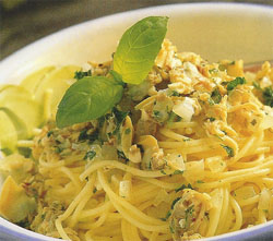 PRéPARATION: Cuire les pâtes dans beaucoup d'eau bouillante et légèrement salée jusqu'à  ce qu'elles soient al dente. Égoutter et remettre dans la casserole et ajouter le beurre. Couvrir, brasser et garder au chaud.
