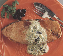 Réduire le feu et cuire environ 15 minutes en remuant de temps en temps. Lorsque l'espadon est bien cuit, ajouter les olives hachées et les câpres égouttées. Laisser reposer 2 minutes pour bien mêler les saveurs.